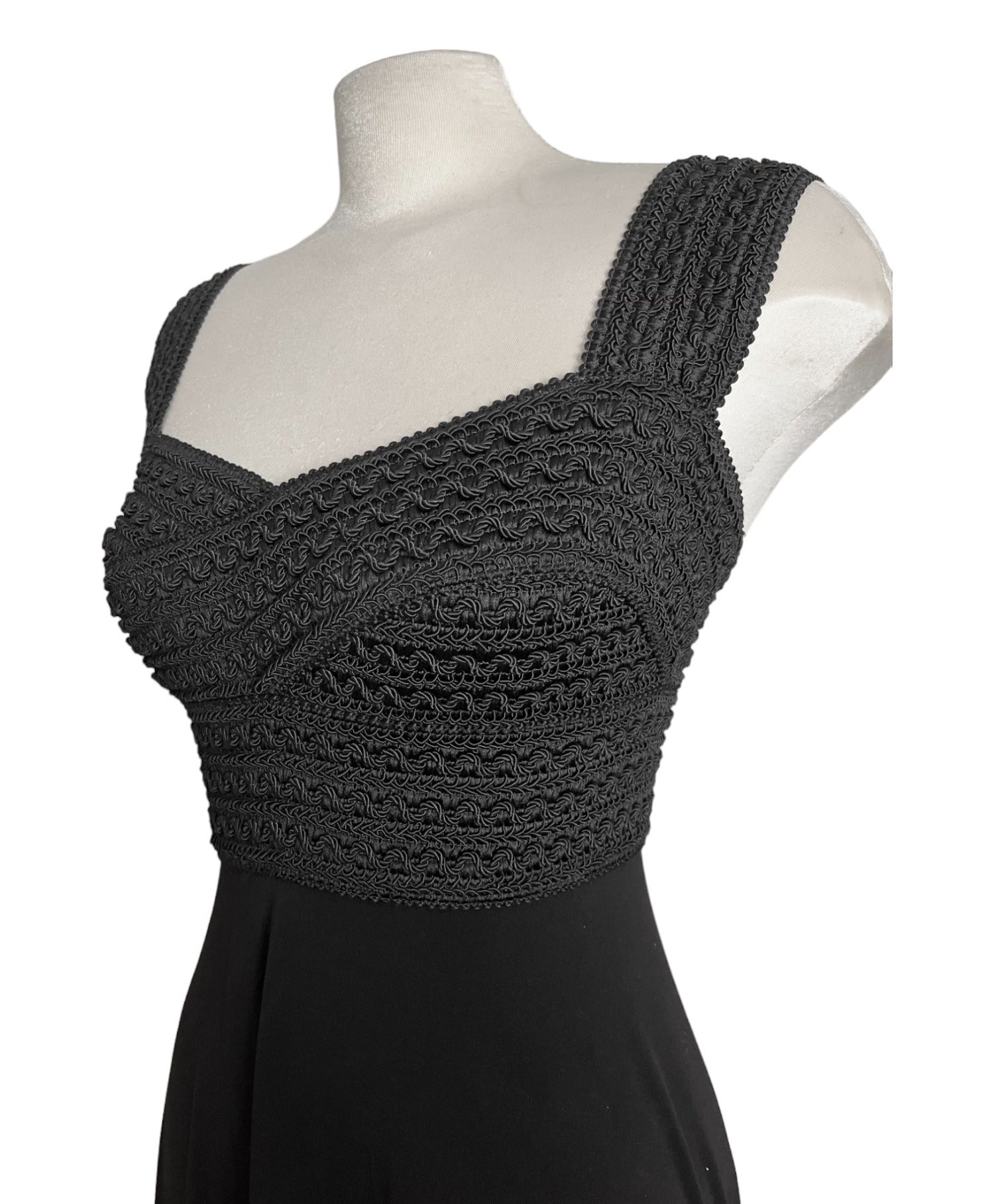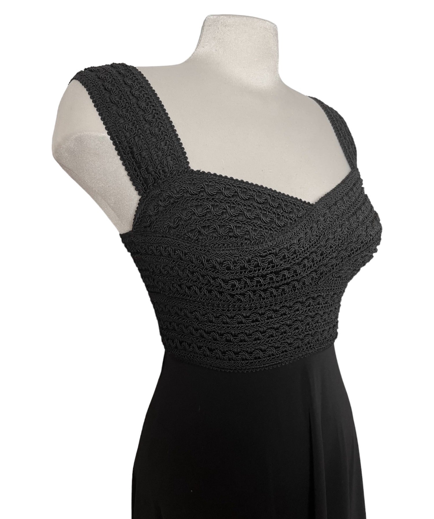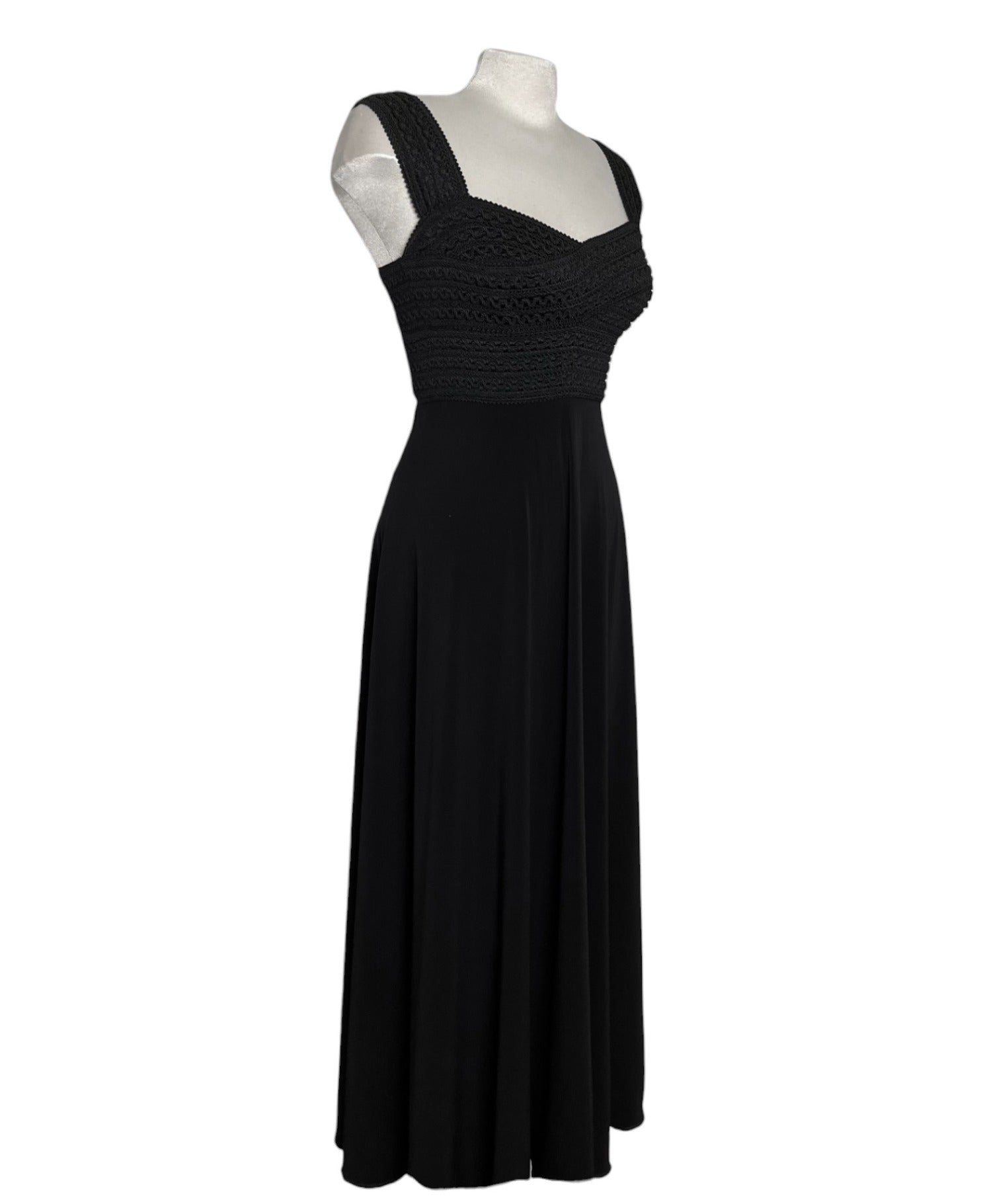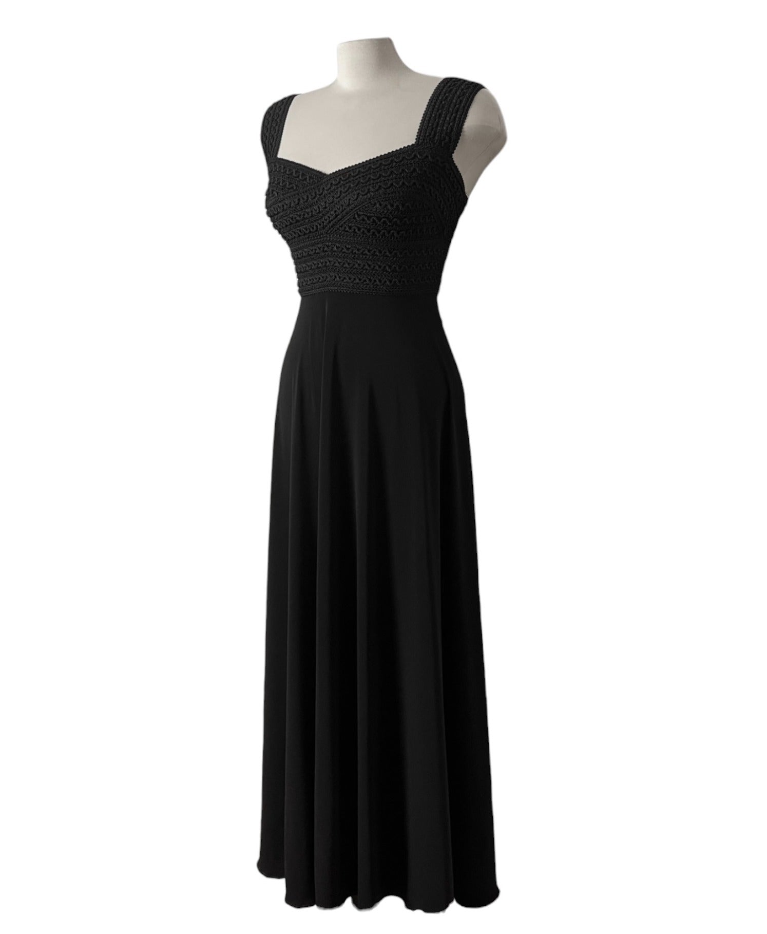 Style #1019 One of our most unique designs, the Ribbon Elastic Long Black Dress is effortlessly chic and sophisticated, this dress features a sleek silhouette with a ribbon elastic detail and a lycra skirt attached to the top, adding a touch of charm to your evening look. This dress would be the perfect fit to transition from a day at the beach to a swanky dinner at a terrasse.